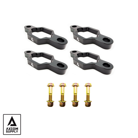 The Axiom Supply Shock Extension Kit provides a safe, reliable, and straightforward solution for extending the length and drop our performance the factory front shocks on your 2011-2026 GM HD truck by up to 2 inches. Precisely engineered and machined for superior strength, these spacers offer a durable upgrade to your factory components, enabling you to level your truck without sacrificing ride quality.